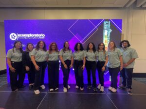 El equipo del EcoExploratorio, integrado por Merry Manso (Gerente de Educación y Eventos Comunitarios), Arnaldo Cabrera (Administrador de IT) y Millie Medina (Coordinadora de Operaciones y Servicios), participó en charlas, presentaciones y sesiones de intercambio con otros museos. Merry Manso representó a la institución con un póster sobre los proyectos y logros del EcoExploratorio, mostrando el impacto educativo de la institución en Puerto Rico.